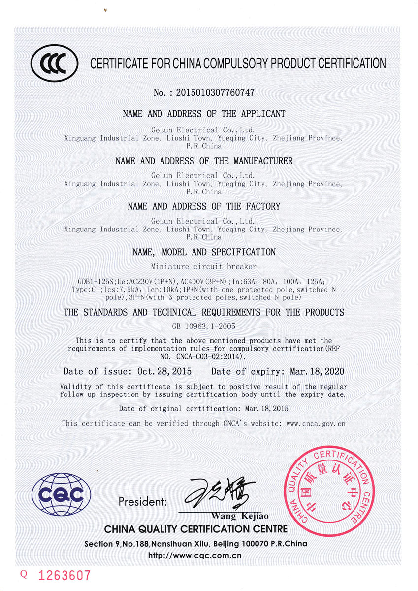 GDB1-□S series circuit breaker for prepaid electricity meter has control signal undervoltage delay shunt trip function, suitable for AC 50Hz (60Hz), rated working voltage 1P+N/230V, 3P+N/400V, rated current up to 125A. The circuit is controlled by remote control or automatic signal control, and the line is overloaded and short-circuit protected. It is widely used in the national grid one-to-one meter renovation project and IC card prepaid energy meter with external special circuit breaker to prevent unpaid electricity bill, and the protection characteristics of the circuit breaker is C-type.