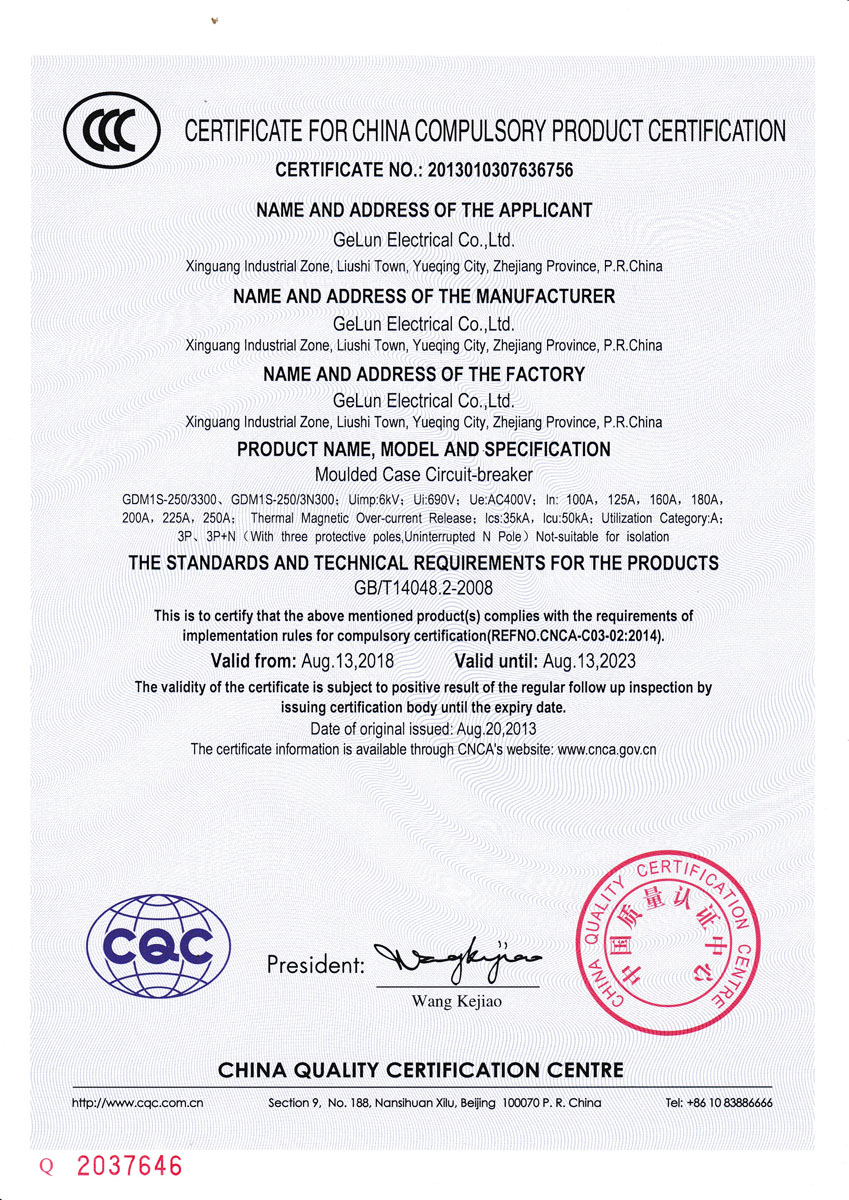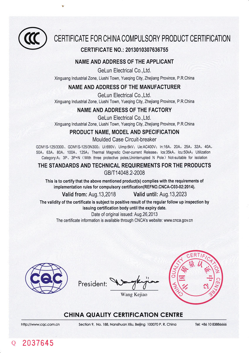Comply with the IEC60947-2、GB/T 14048.2 Standard