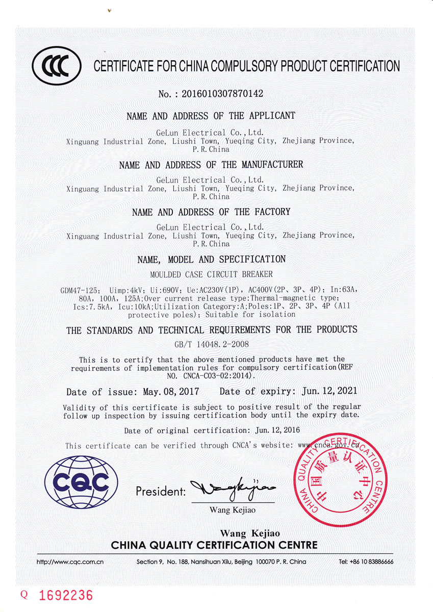 GDM47-125 (NC125) series molded case circuit breaker has high breaking capacity and current limiting characteristics, and isolation switch function. It can also assemble leakage protection accessories and can be combined with various electrical auxiliary devices to form functional switches. Used as an overload and short circuit protection in low-voltage distribution systems, it is suitable for isolation. The rated working voltage of the circuit breaker is AC230V (1P), AC400V (2P, 3P, 4P).