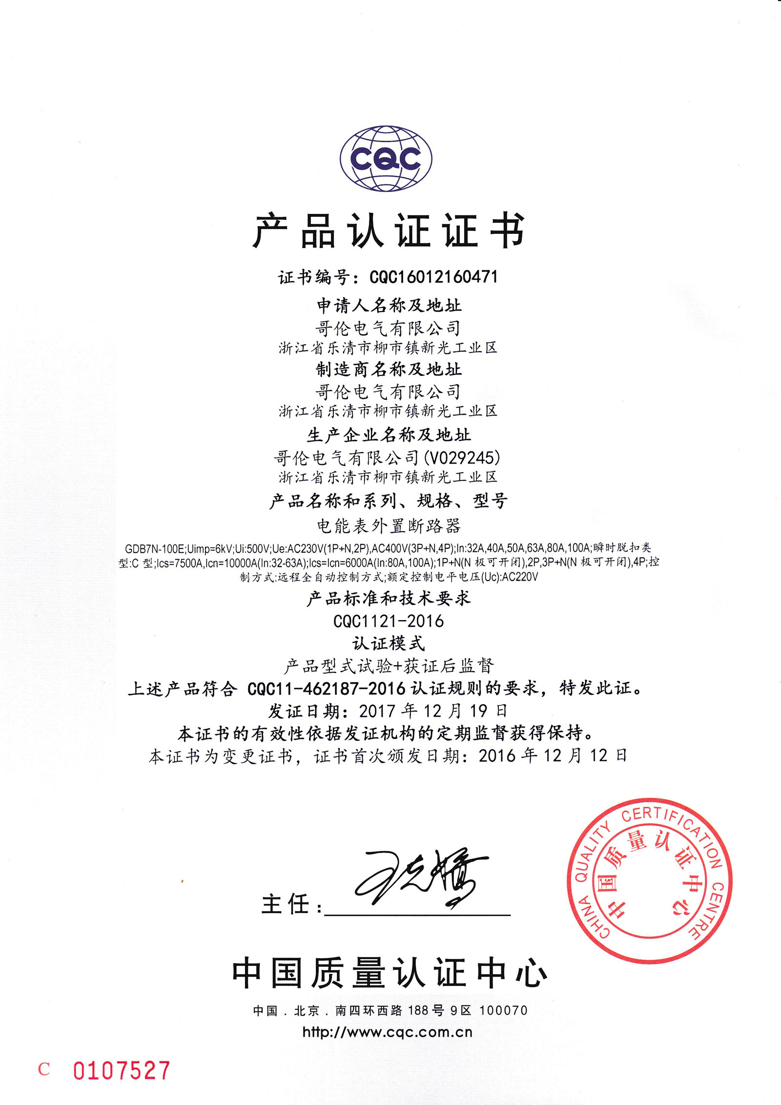 本產(chǎn)品符合GB10963.1《電氣附件家用及類(lèi)似場(chǎng)所用過(guò)電流保護斷路器第1部分:用于交流的斷路器》標準要求。