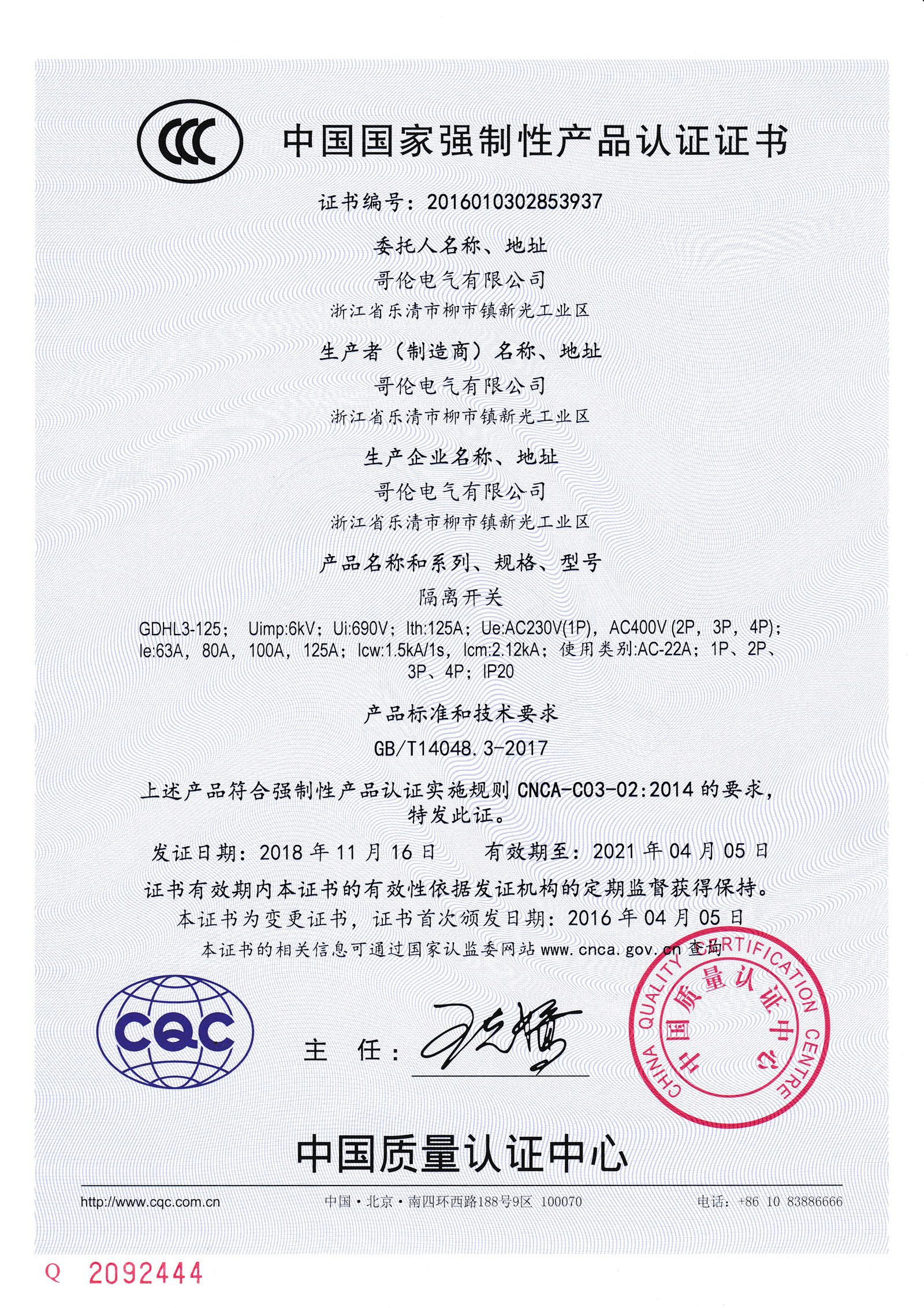 開(kāi)關(guān)符合GB14048.3、IEC60947-3標準。