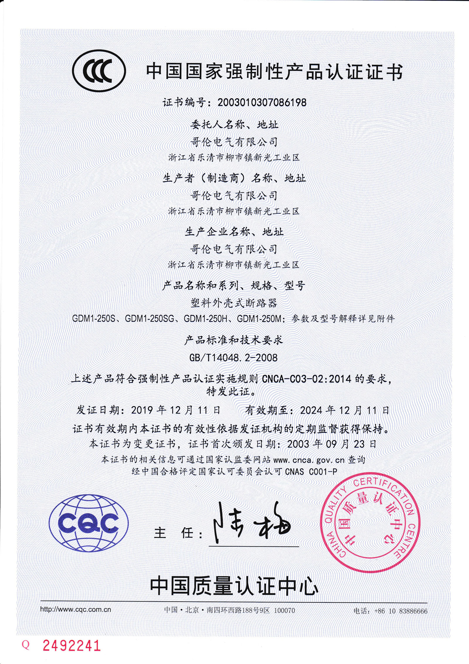 產(chǎn)品符合IEC60947-2、GB/T 14048.2標準。